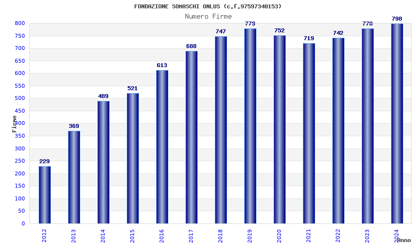 | Anno | Firme | Importi | Media | Naz. | Reg. | Prov. | Comu. |