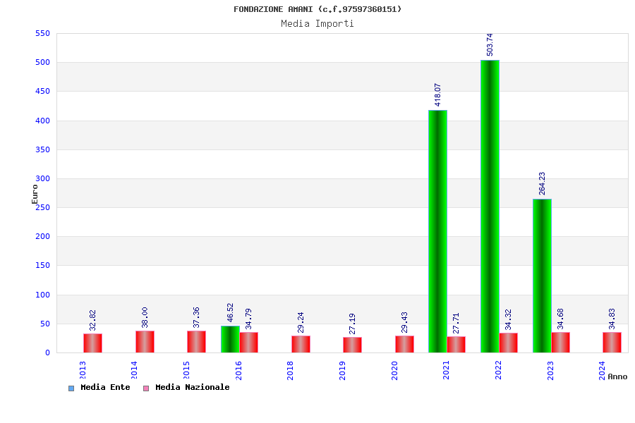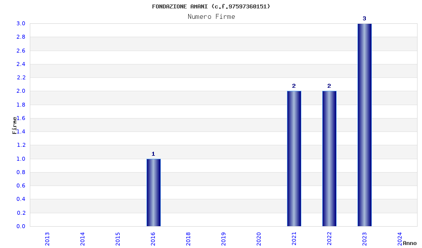 | Anno | Firme | Importi | Media | Naz. | Reg. | Prov. | Comu. |