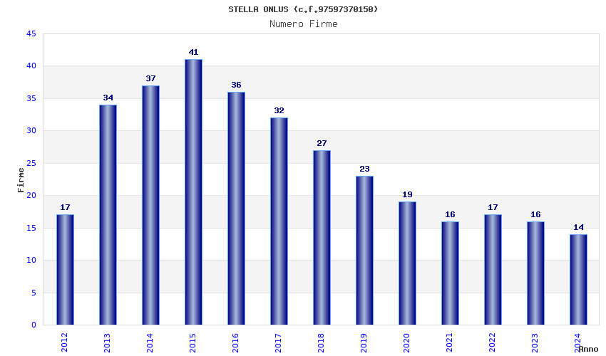 | Anno | Firme | Importi | Media | Naz. | Reg. | Prov. | Comu. |