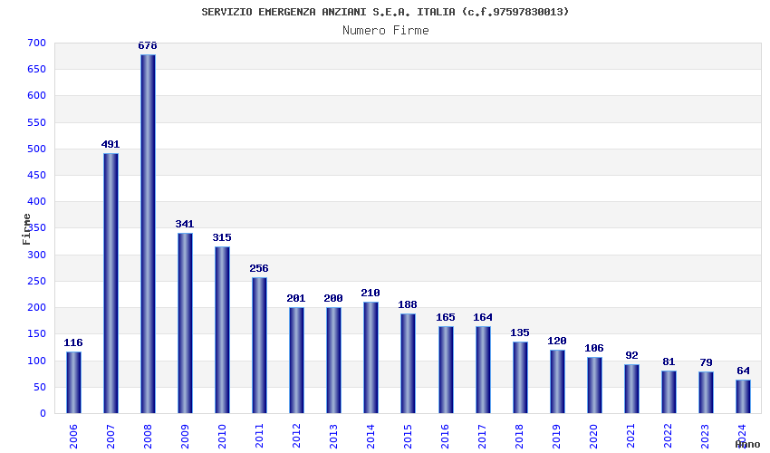 | Anno | Firme | Importi | Media | Naz. | Reg. | Prov. | Comu. |