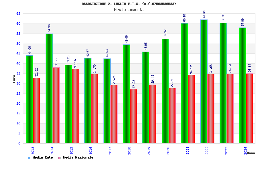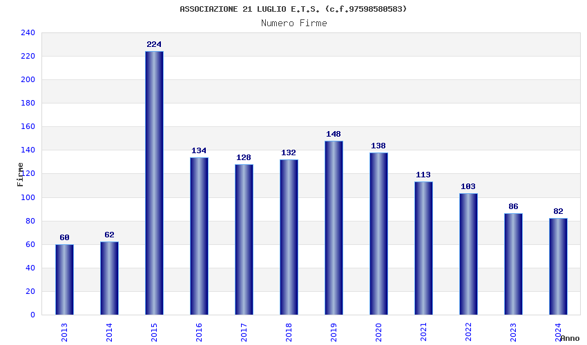 | Anno | Firme | Importi | Media | Naz. | Reg. | Prov. | Comu. |