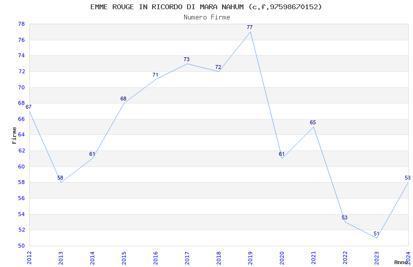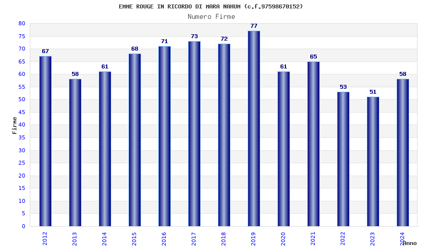 | Anno | Firme | Importi | Media | Naz. | Reg. | Prov. | Comu. |