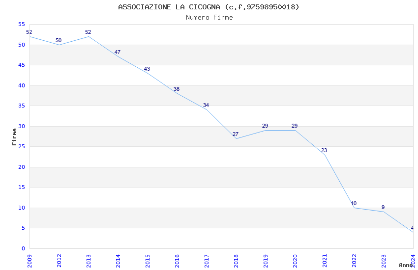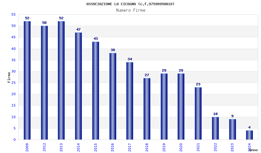 | Anno | Firme | Importi | Media | Naz. | Reg. | Prov. | Comu. |