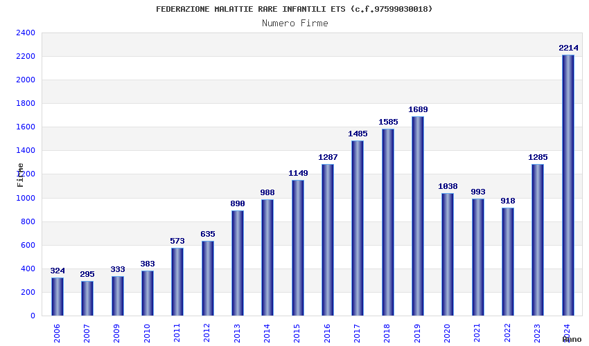 | Anno | Firme | Importi | Media | Naz. | Reg. | Prov. | Comu. |