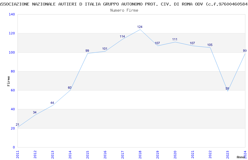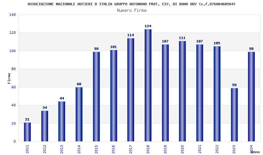 | Anno | Firme | Importi | Media | Naz. | Reg. | Prov. | Comu. |