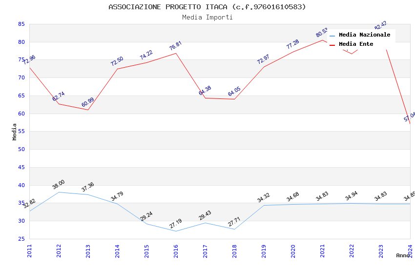 | Anno | Firme | Importi | Media | Naz. | Reg. | Prov. | Comu. |