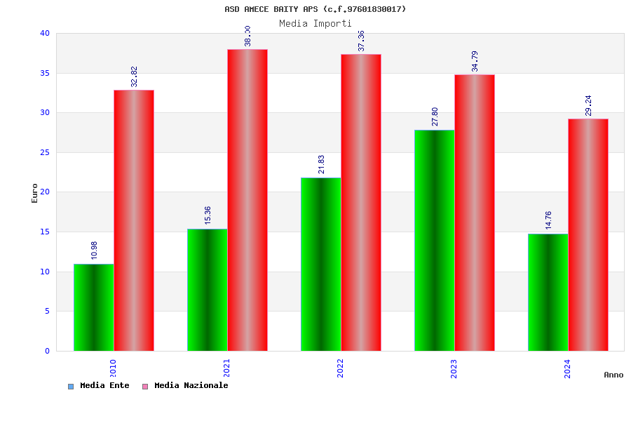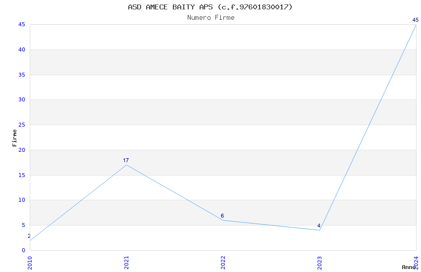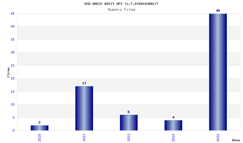 | Anno | Firme | Importi | Media | Naz. | Reg. | Prov. | Comu. |