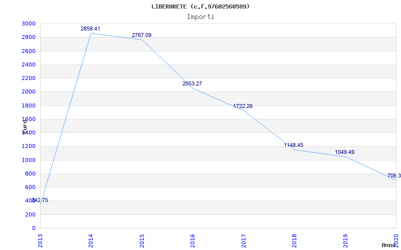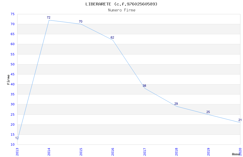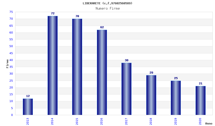 | Anno | Firme | Importi | Media | Naz. | Reg. | Prov. | Comu. |