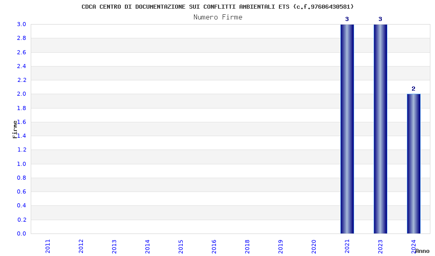 | Anno | Firme | Importi | Media | Naz. | Reg. | Prov. | Comu. |