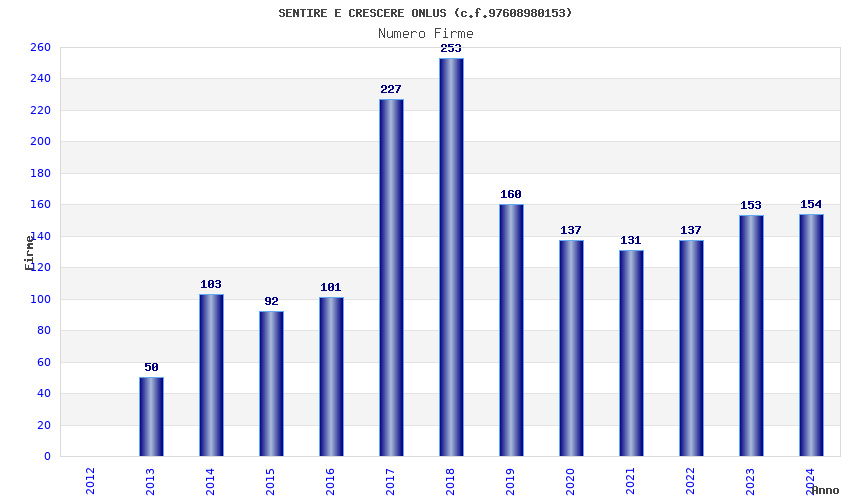 | Anno | Firme | Importi | Media | Naz. | Reg. | Prov. | Comu. |