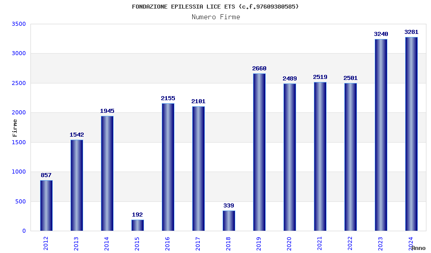 | Anno | Firme | Importi | Media | Naz. | Reg. | Prov. | Comu. |