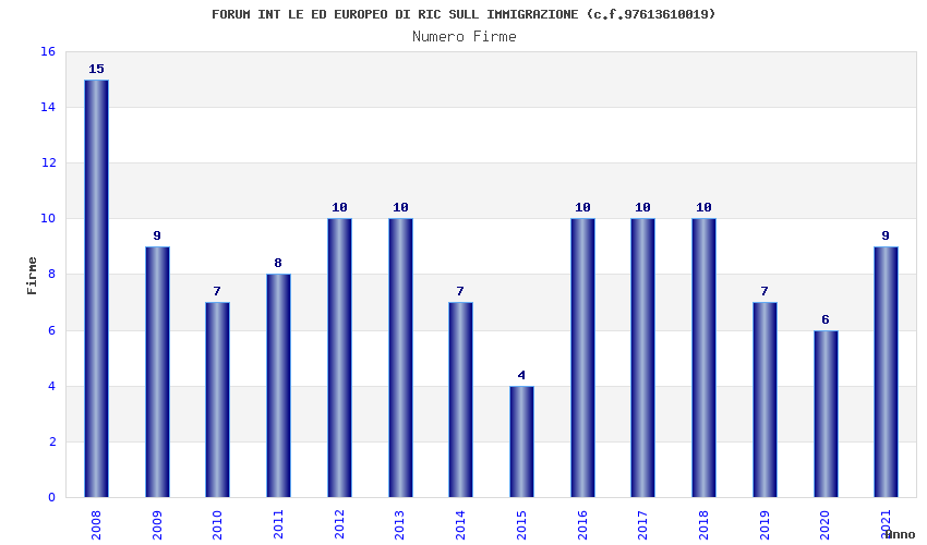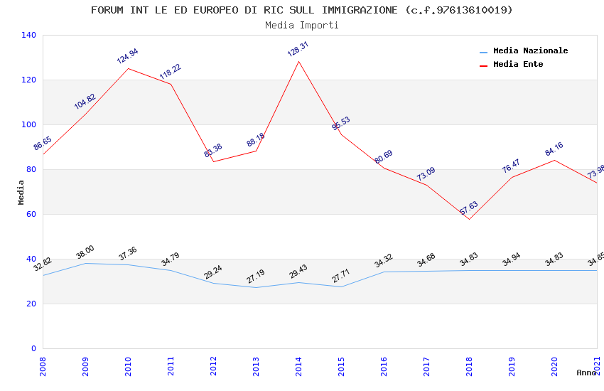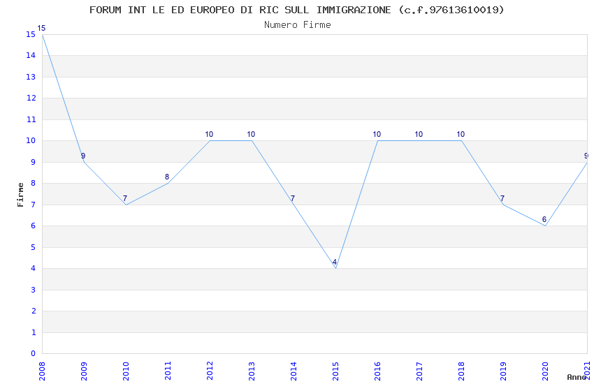 | Anno | Firme | Importi | Media | Naz. | Reg. | Prov. | Comu. |