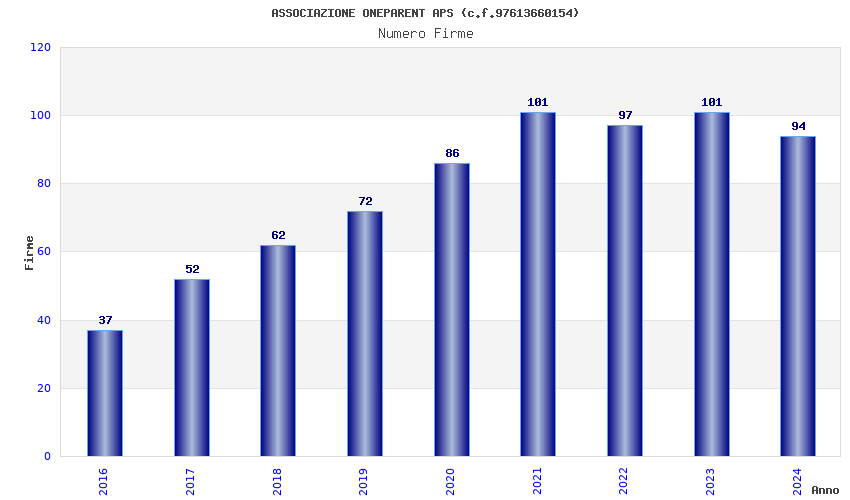 | Anno | Firme | Importi | Media | Naz. | Reg. | Prov. | Comu. |