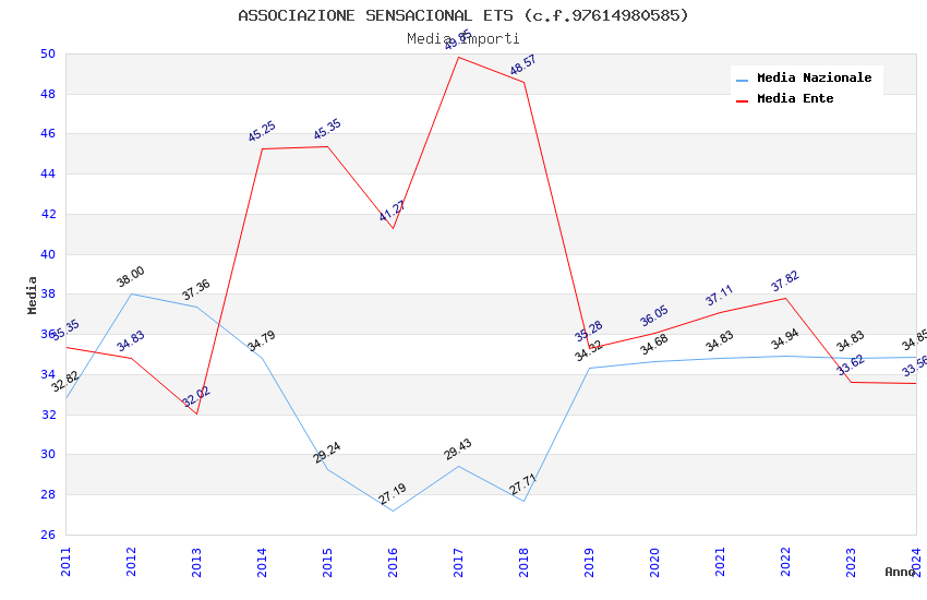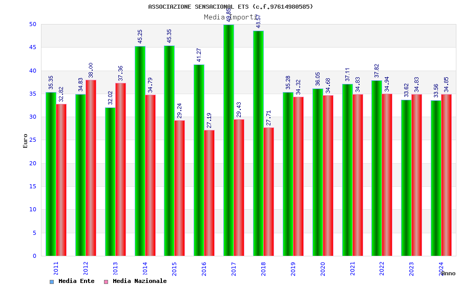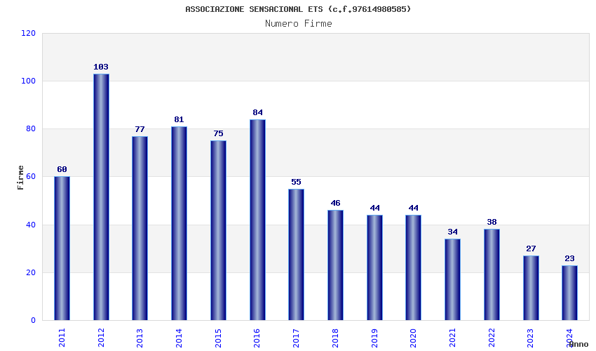 | Anno | Firme | Importi | Media | Naz. | Reg. | Prov. | Comu. |