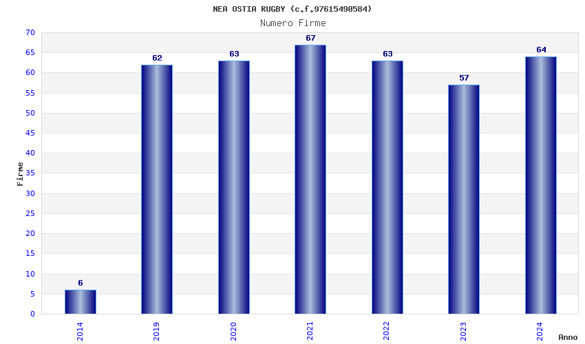 | Anno | Firme | Importi | Media | Naz. | Reg. | Prov. | Comu. |