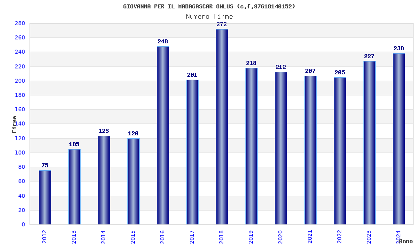 | Anno | Firme | Importi | Media | Naz. | Reg. | Prov. | Comu. |