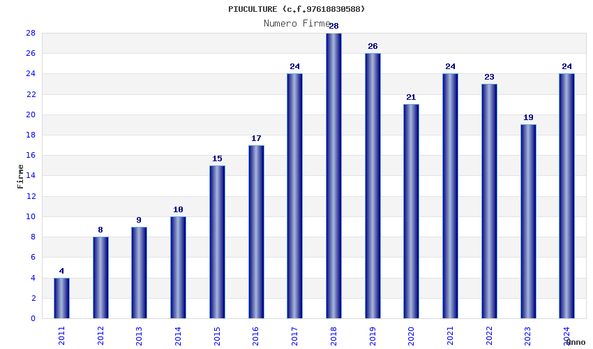 | Anno | Firme | Importi | Media | Naz. | Reg. | Prov. | Comu. |