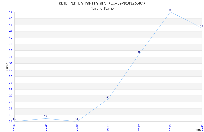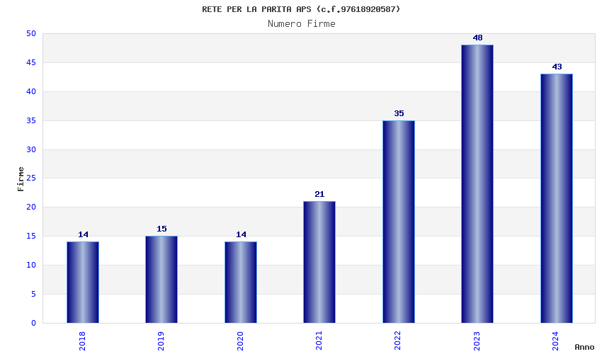 | Anno | Firme | Importi | Media | Naz. | Reg. | Prov. | Comu. |