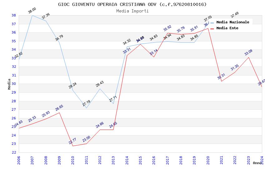 | Anno | Firme | Importi | Media | Naz. | Reg. | Prov. | Comu. |