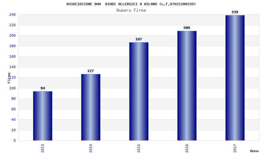 | Anno | Firme | Importi | Media | Naz. | Reg. | Prov. | Comu. |