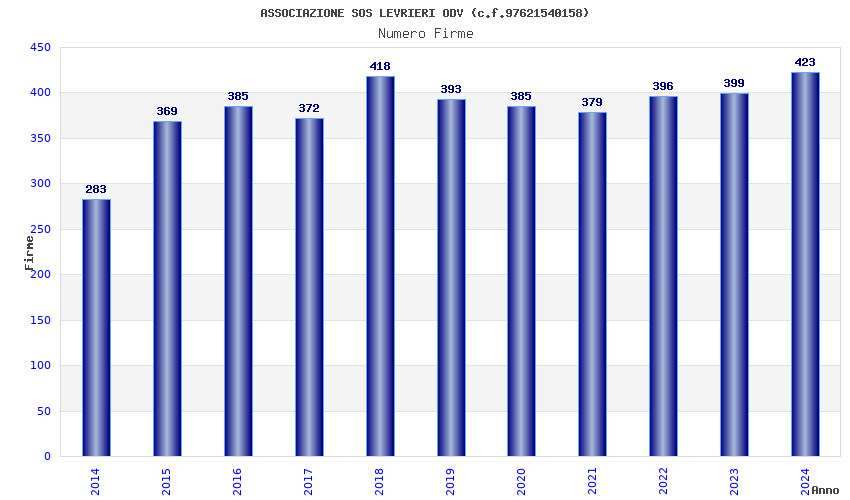 | Anno | Firme | Importi | Media | Naz. | Reg. | Prov. | Comu. |