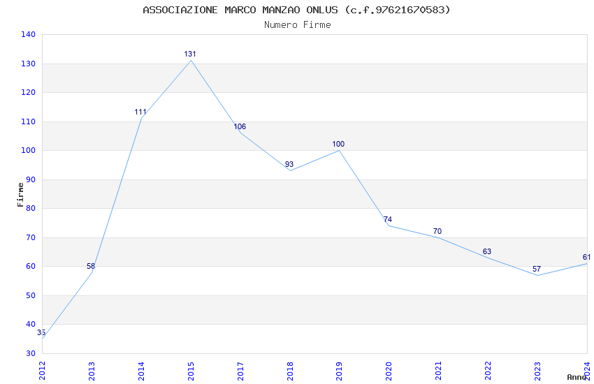 | 2015 | 131 | 3.713,83 | 28,35 | 13.936 | 1.498 | 1.300 | 1.106 |
