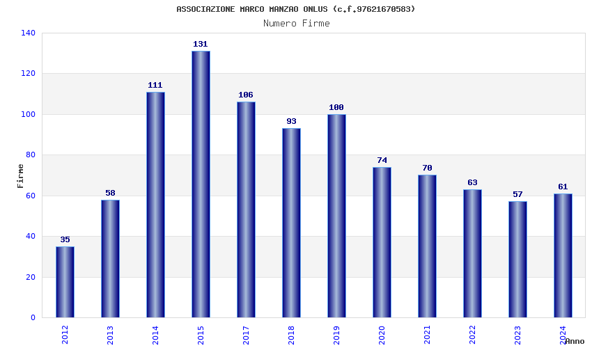 | Anno | Firme | Importi | Media | Naz. | Reg. | Prov. | Comu. |