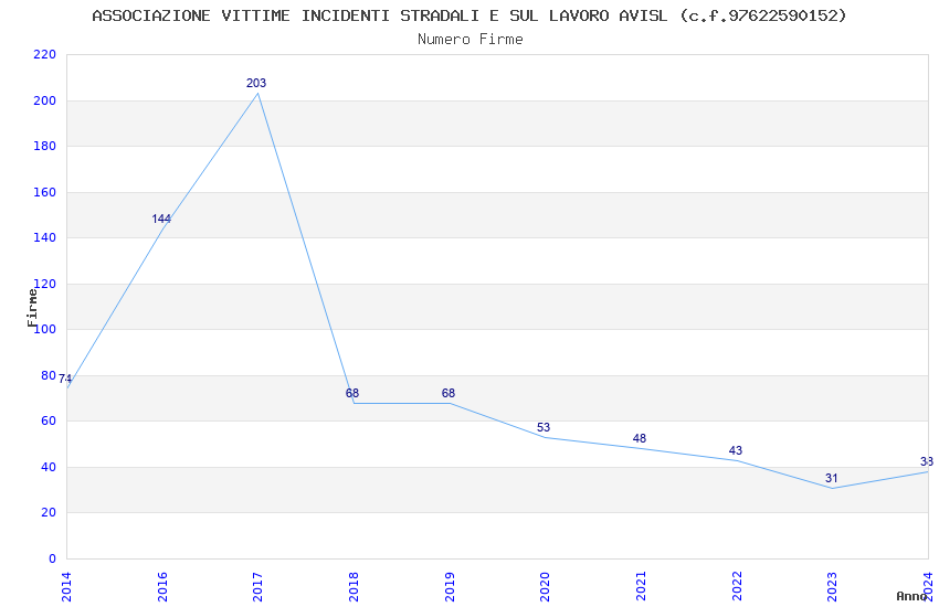 | 2017 | 203 | 4.544,61 | 22,39 | 12.185 | 2.821 | 1.156 | 761 |