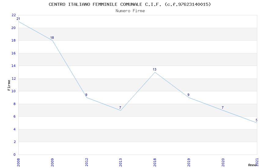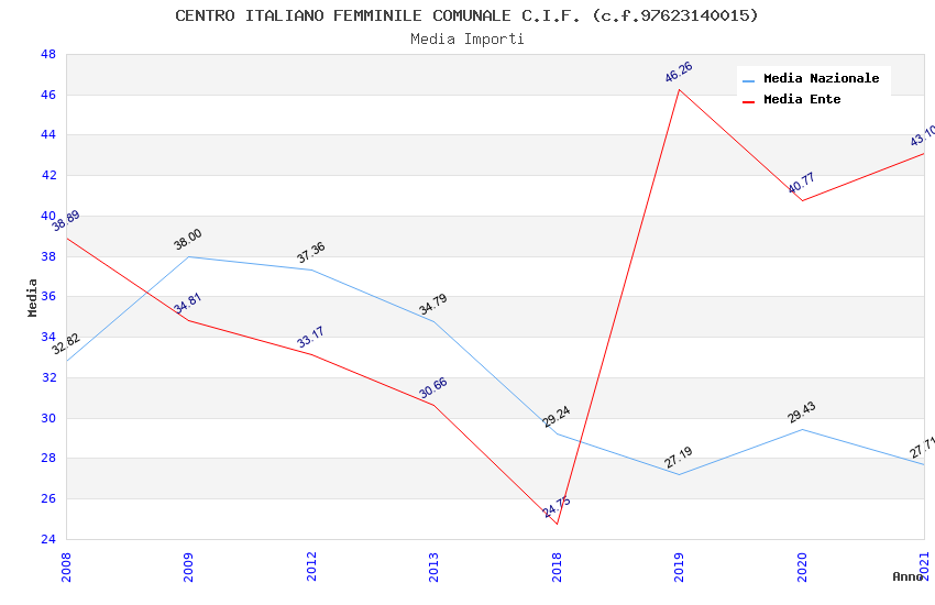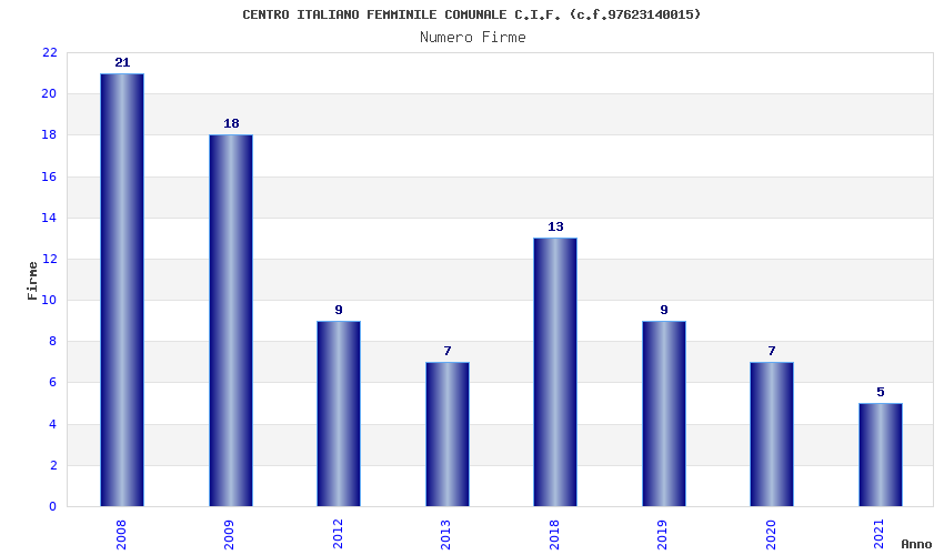 | Anno | Firme | Importi | Media | Naz. | Reg. | Prov. | Comu. |