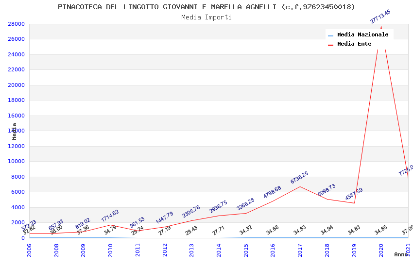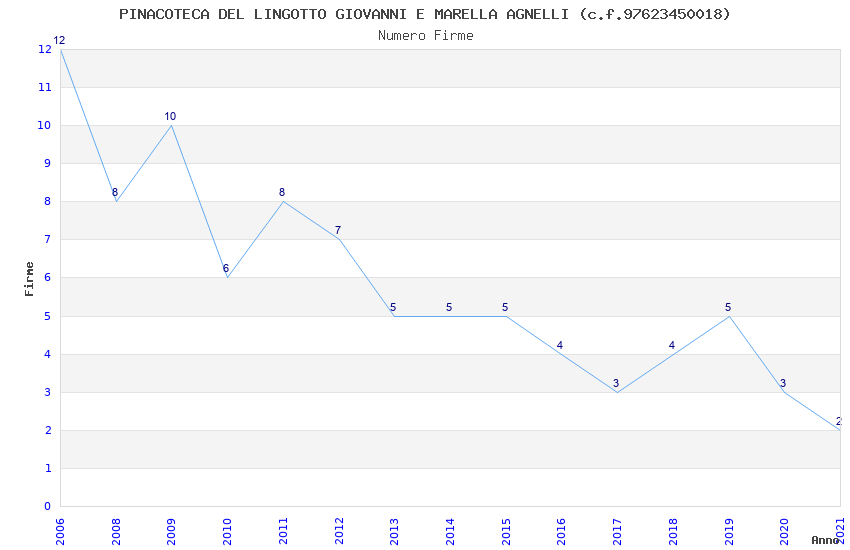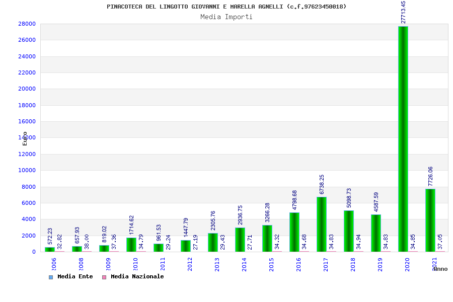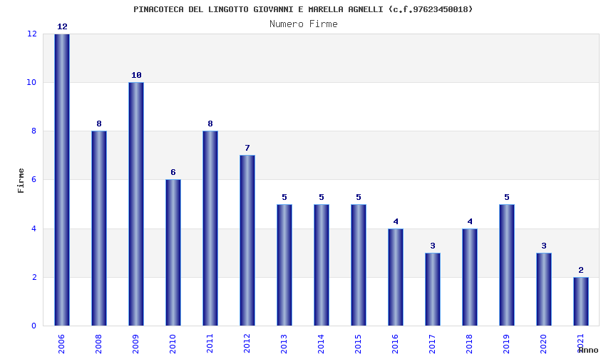 | Anno | Firme | Importi | Media | Naz. | Reg. | Prov. | Comu. |