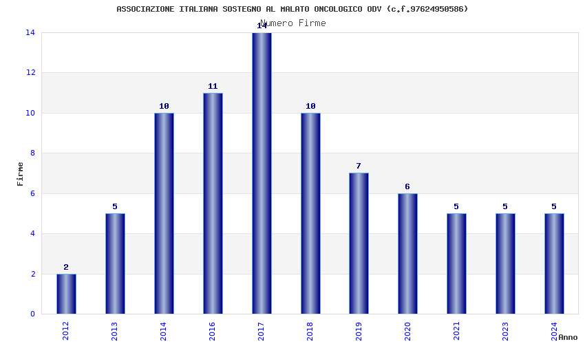 | Anno | Firme | Importi | Media | Naz. | Reg. | Prov. | Comu. |