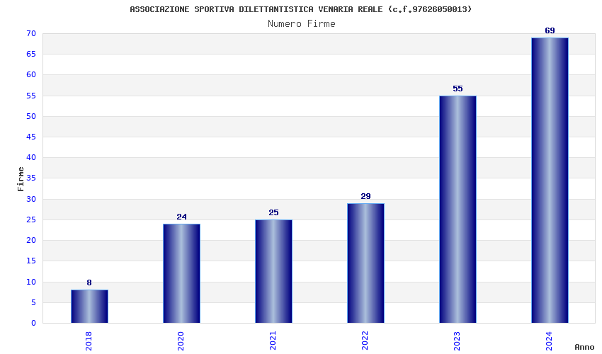 | Anno | Firme | Importi | Media | Naz. | Reg. | Prov. | Comu. |