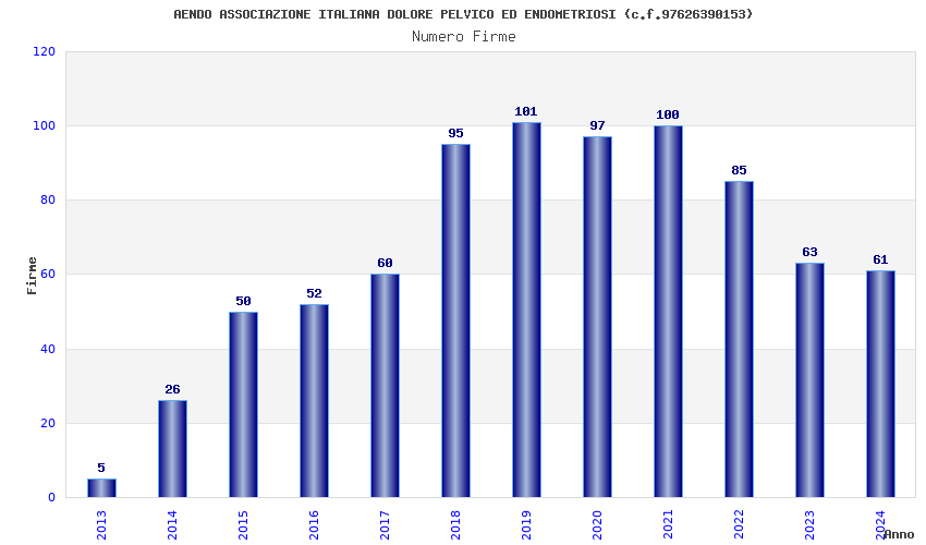 | Anno | Firme | Importi | Media | Naz. | Reg. | Prov. | Comu. |