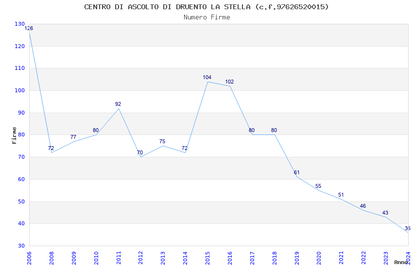 | 2015 | 104 | 3.178,83 | 30,57 | 15.775 | 1.195 | 616 | 2 |