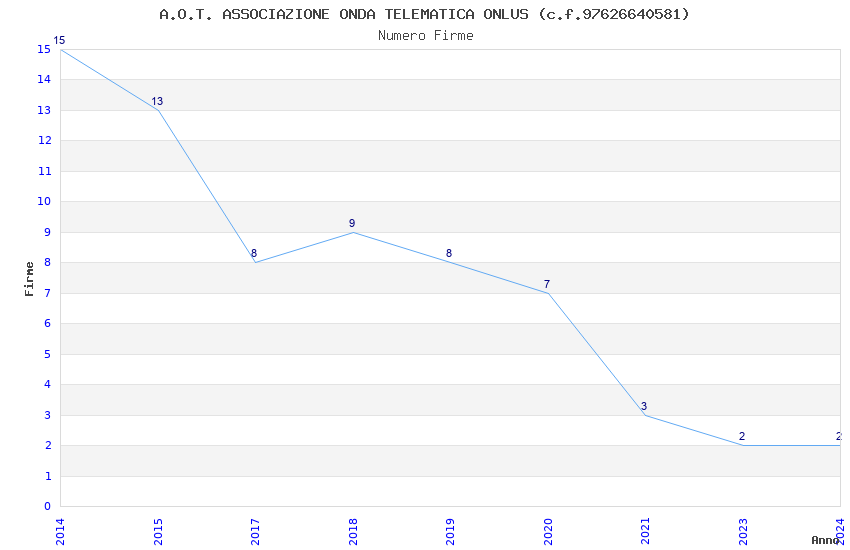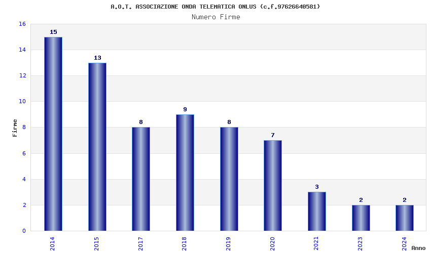 | Anno | Firme | Importi | Media | Naz. | Reg. | Prov. | Comu. |
