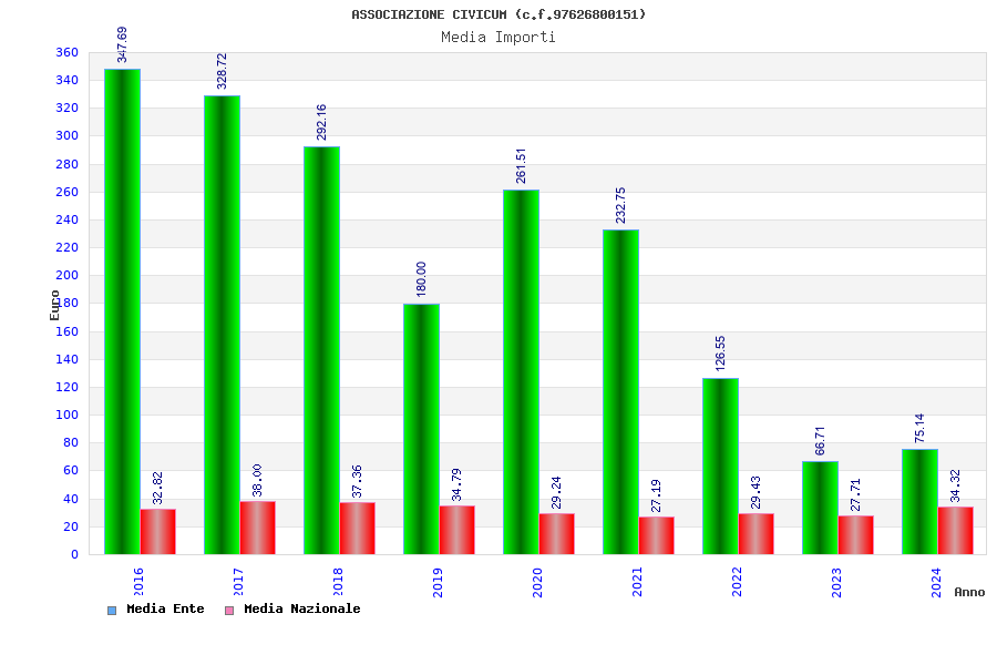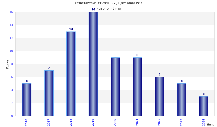 | Anno | Firme | Importi | Media | Naz. | Reg. | Prov. | Comu. |