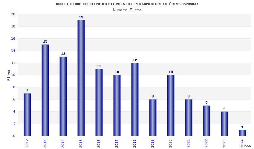 | Anno | Firme | Importi | Media | Naz. | Reg. | Prov. | Comu. |