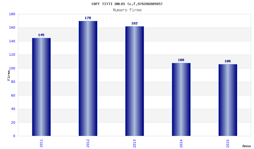 | Anno | Firme | Importi | Media | Naz. | Reg. | Prov. | Comu. |
