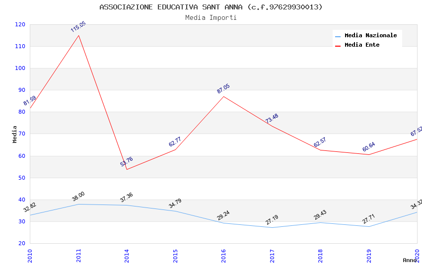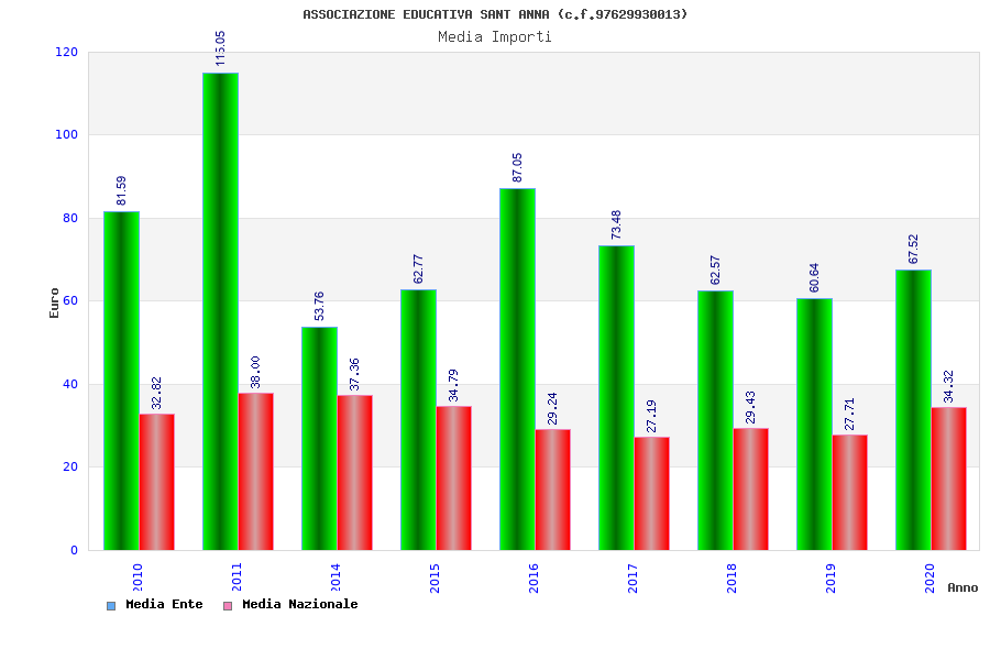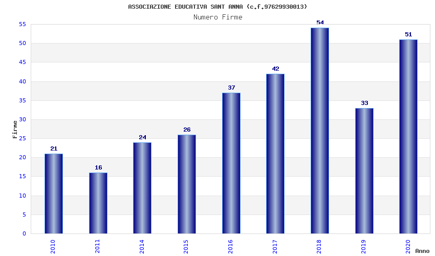 | Anno | Firme | Importi | Media | Naz. | Reg. | Prov. | Comu. |