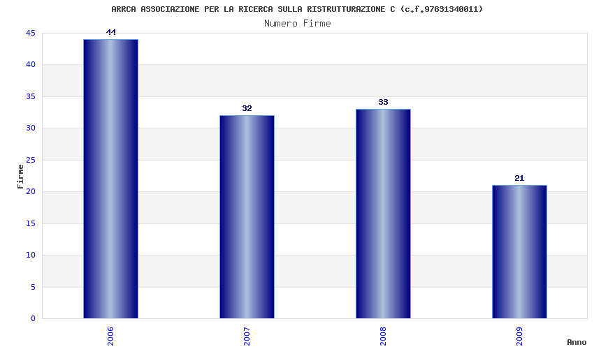 | Anno | Firme | Importi | Media | Naz. | Reg. | Prov. | Comu. |