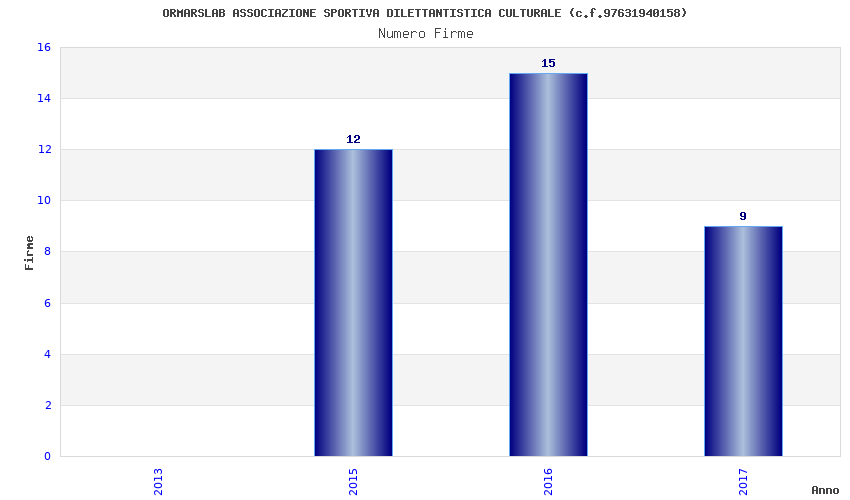 | Anno | Firme | Importi | Media | Naz. | Reg. | Prov. | Comu. |