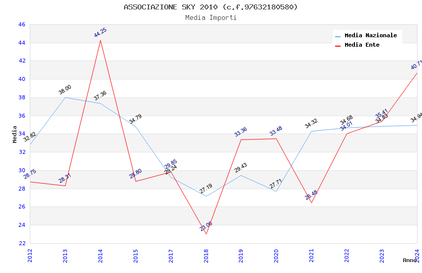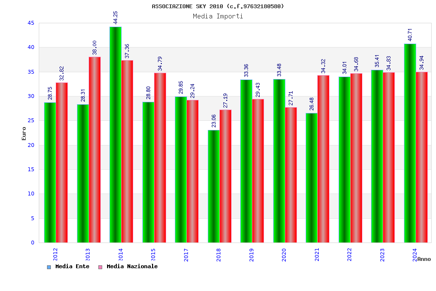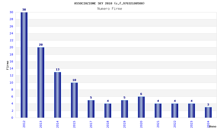 | Anno | Firme | Importi | Media | Naz. | Reg. | Prov. | Comu. |