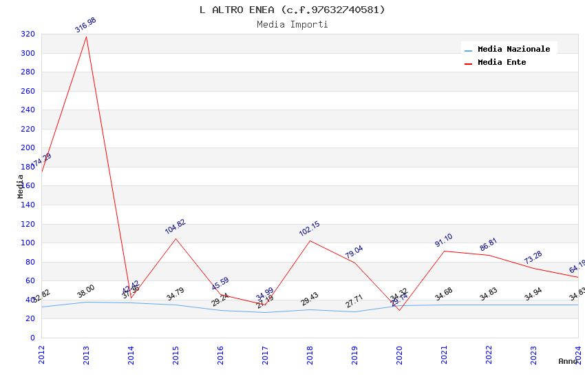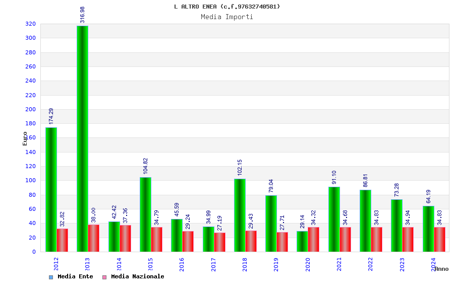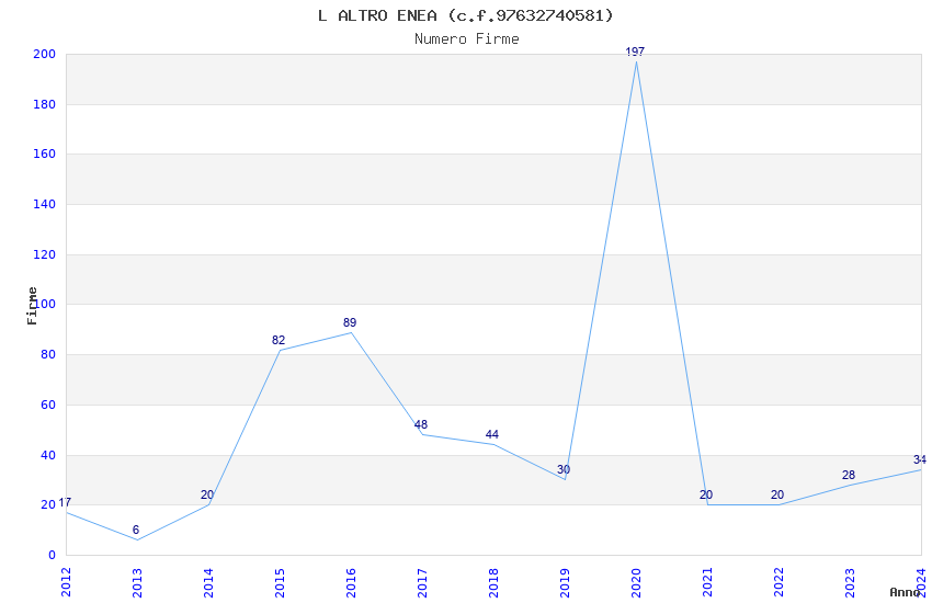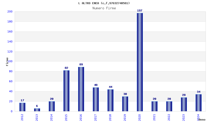 | Anno | Firme | Importi | Media | Naz. | Reg. | Prov. | Comu. |