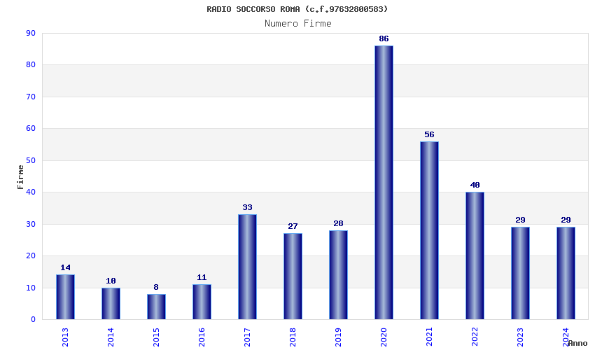 | Anno | Firme | Importi | Media | Naz. | Reg. | Prov. | Comu. |