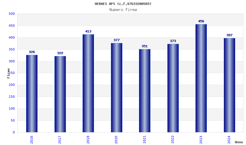 | Anno | Firme | Importi | Media | Naz. | Reg. | Prov. | Comu. |
