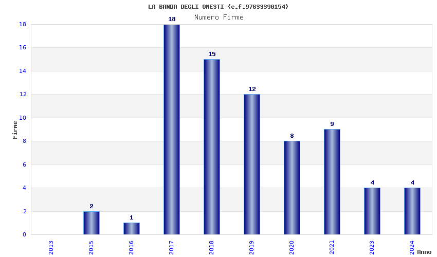 Anno Firme Importi Media Naz. Reg. Prov. Comu.