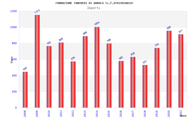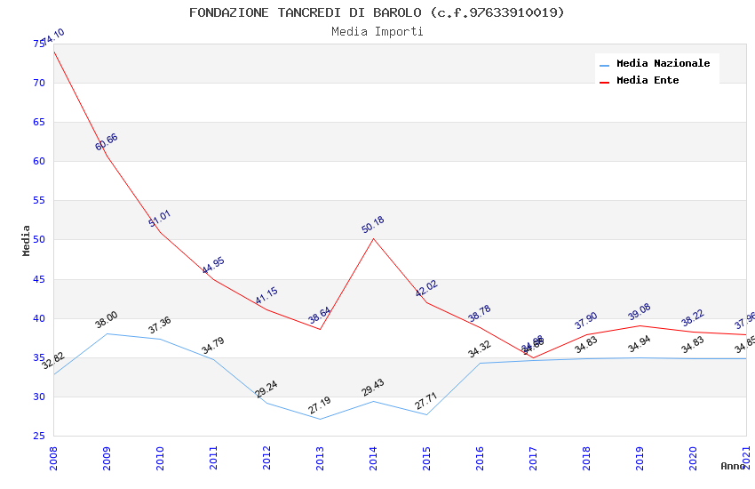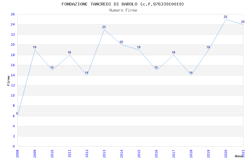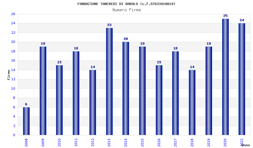 | Anno | Firme | Importi | Media | Naz. | Reg. | Prov. | Comu. |