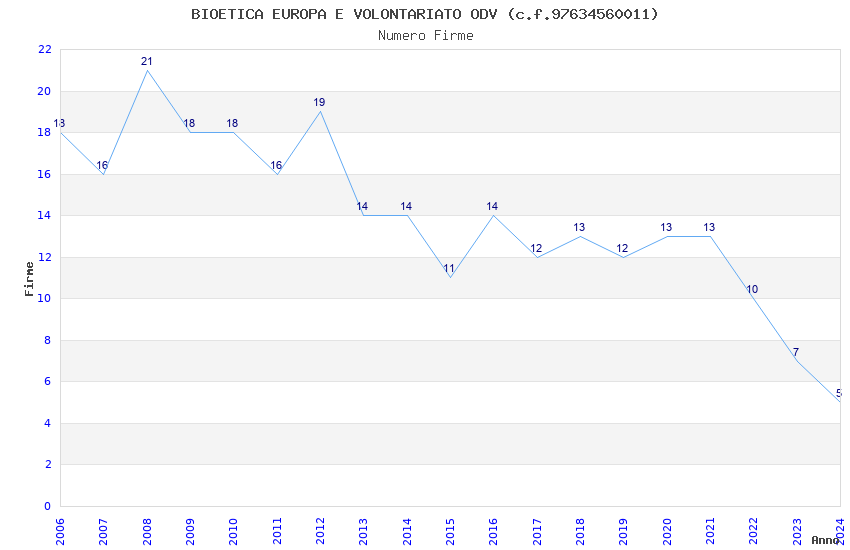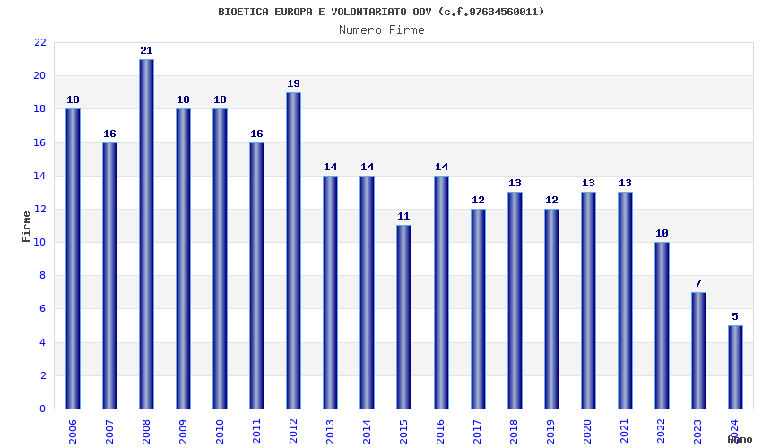 | Anno | Firme | Importi | Media | Naz. | Reg. | Prov. | Comu. |