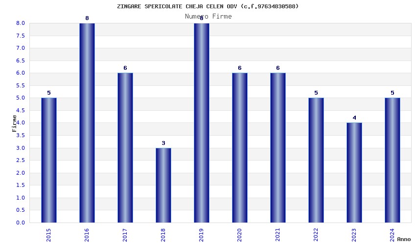 | Anno | Firme | Importi | Media | Naz. | Reg. | Prov. | Comu. |