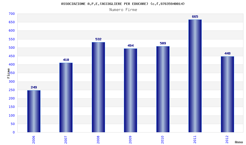 | Anno | Firme | Importi | Media | Naz. | Reg. | Prov. | Comu. |